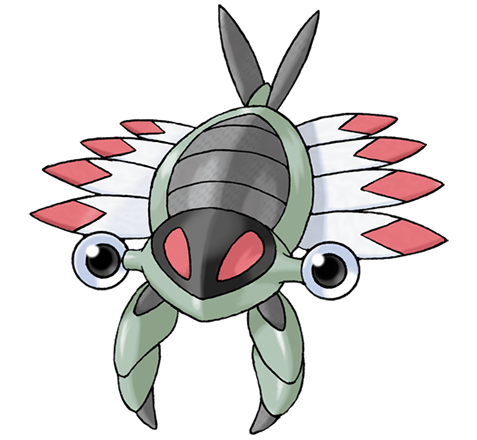 Un Pokémon insecto ancestral. Según parece, era capaz de nadar sorprendentemente rápido gracias a sus ocho alas. | |