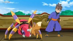 Kellyn/Primo capturó momentáneamente un Ariados con su capturador para que le ayudara a enfrentarse a los esbirros de J.