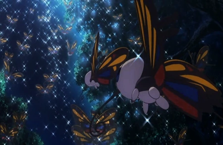 Al comienzo de la película, cuando Ash, Dawn/Maya y Brock llegan a pueblo Álamos, pueden apreciar la belleza de sus calles y sus personas. En este intervalo, un Beautifly pasa volando.