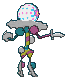Se desliza hacia la gente. Entonces, sin previo aviso, desencadena la explosión de su propia cabeza. Aparentemente es un tipo de UE. | |