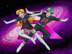 Butch y Cassidy en una misión en la escuela del Team/Equipo Rocket.