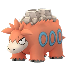 Las jorobas de su lomo se han convertido en un único volcán de grandes dimensiones y en constante actividad porque el magma en ebullición de su cuerpo emana sin cesar. Este Pokémon, que detesta profundamente el agua o cualquier ápice de humedad, tiene una personalidad explosiva y muy malas pulgas. De hecho, si el volcán de su lomo está en constante erupción, no es para otra cosa que para intimidar a sus rivales.Tiene la letra M en su frente y los mechones que tenía en la parte superior de la cabeza se vuelven más grandes,en especial el central.Sus pezuñas se vuelven más oscuras y su pelaje se vuelve más denso.