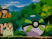 - Concurso de captura de bichos, con Chikorita, y capturó un Weedle, pero perdió contra el Beedrill de Ash, que después sería suyo.
