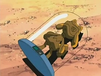 Generalmente, usa a Salamence como transporte, para así viajar más rápido y alcanzar a su presa para transformarla en estatua. Se desconoce cuándo lo capturó. |