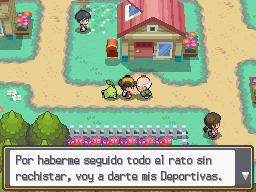 - Tras haber ido a la casa del Sr. Pokémon: He luchado contra los entrenadores del camino. Mis Pokémon han perdido. ¡Están fatal! Los llevaré al Centro Pokémon.