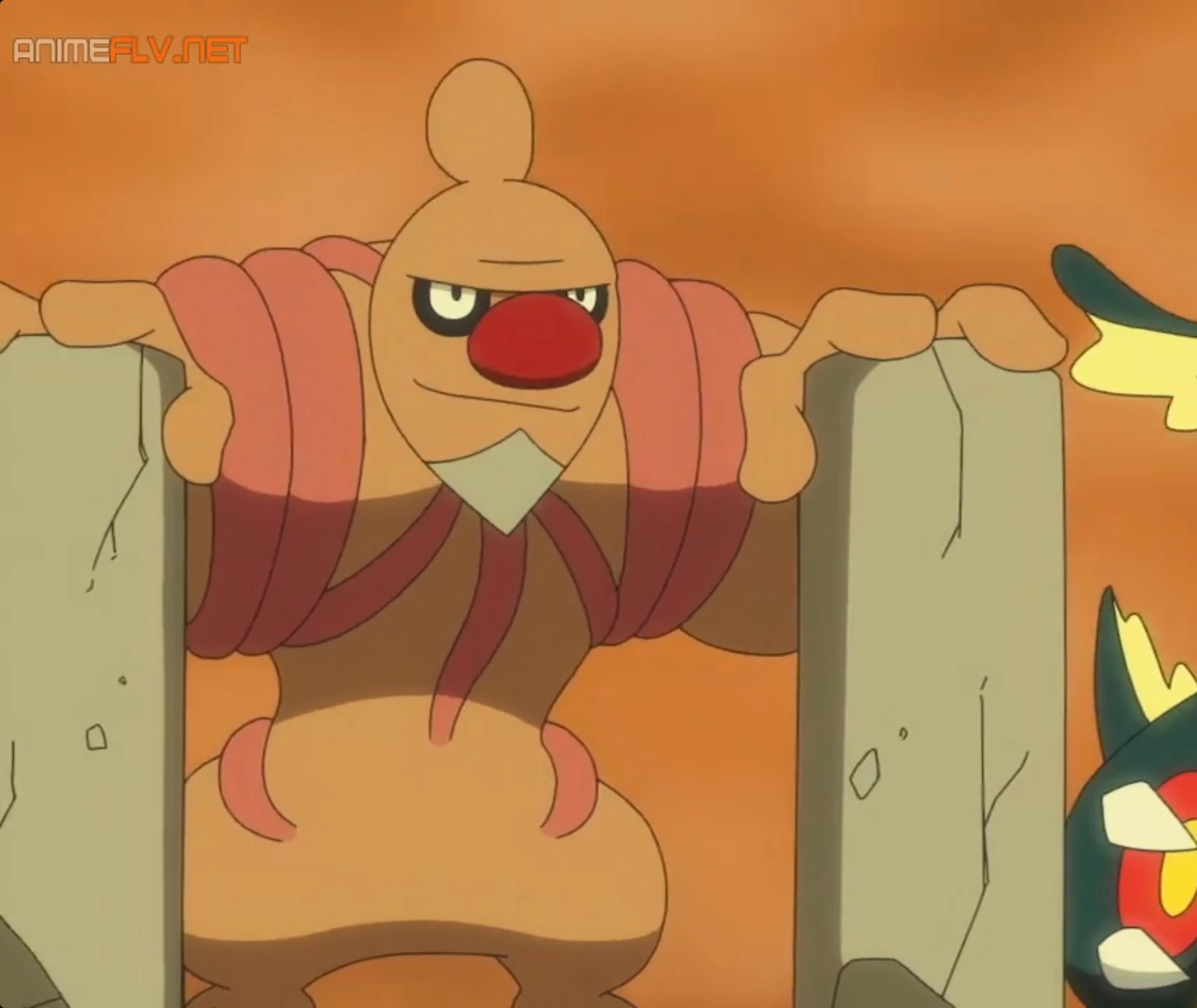| Pokédex de Ash | EP732 | ES: Conkeldurr, el Pokémon musculoso y forma evolucionada de Gurdurr. Conkeldurr usa columnas de hormigón como jabalinas que lanza con facilidad. |