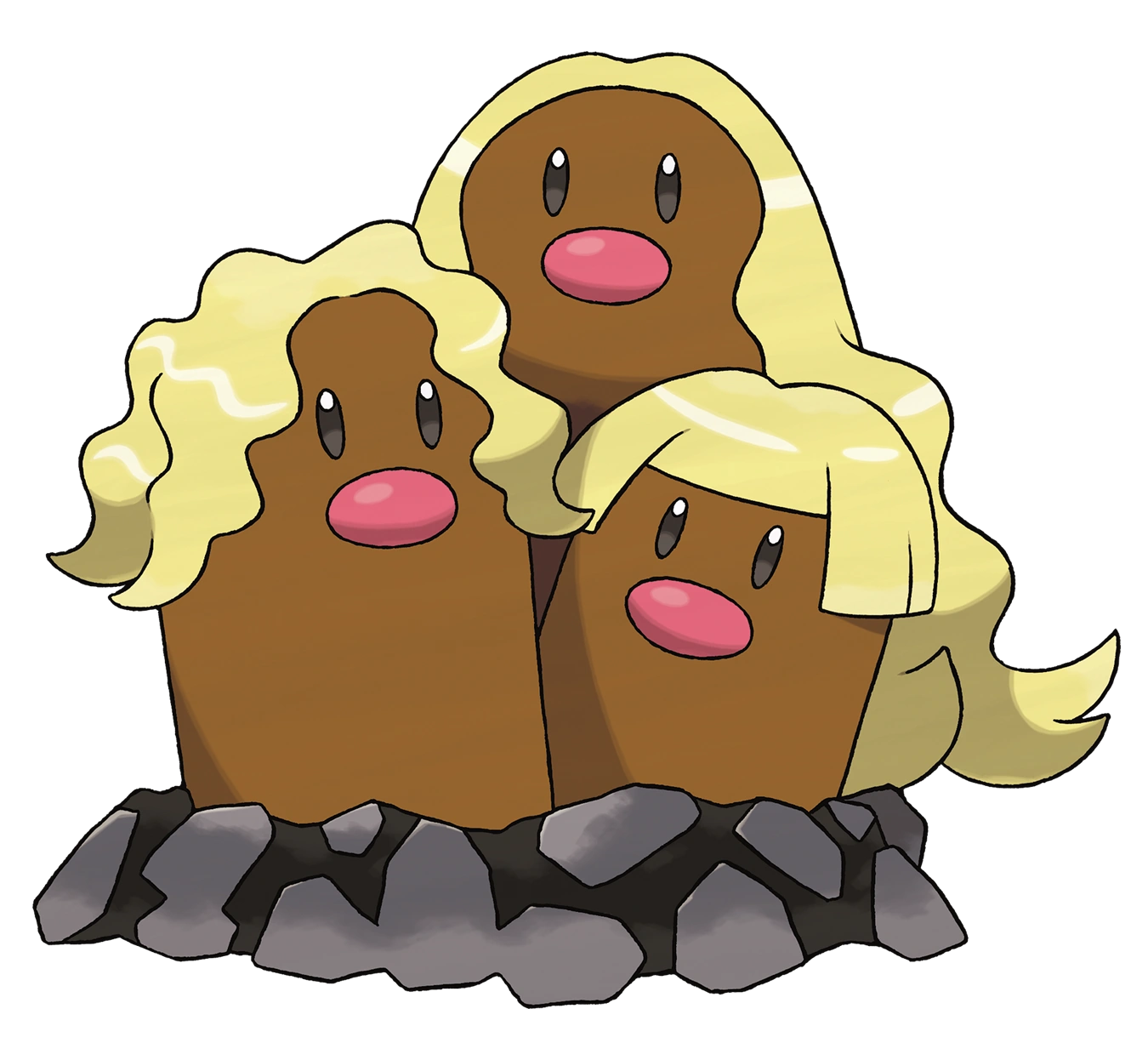 | Esmeralda | Los Dugtrio son trillizos que salieron de un mismo cuerpo, por eso piensan de la misma forma, A la hora de cavar, trabajan en equipo y sin descanso. | |