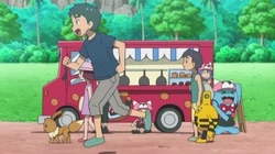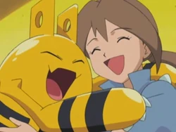 Aparece uno junto a su entrenadora sobre el puente de la Escuela Pokémon (anime).