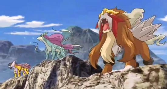 Aparece en la Decimotercera película junto con Raikou y Suicune siendo estos Pokémon variocolores. En esta película los 3 van a Ciudad Corona y atacan a Zoroark pensando que es un enemigo.