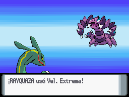 Velocidad extrema permite atacar a Rayquaza primero contra Drapion en el combate.