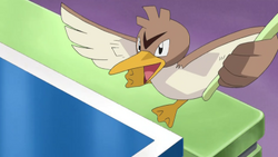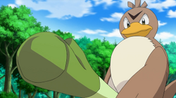 Este Farfetch'd pertenece a Keita. Juntos se organizaban para robar los Pokémon de otros entrenadores.
