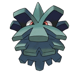 Un Forretress con sus cuernos guardados y a punto de cerrar su caparazón para ejecutar giro rápido.