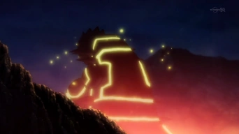 Tritana le cuenta una historia a Aura. Groudon primigenio y Kyogre primigenio empezaron a tener un combate muy intenso. Durante el combate Groudon primigenio utiliza el movimiento filo del abismo (ver imagen