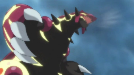 Tras la regresión primigenia, el ataque de Groudon se dispara, adquiere el tipo fuego y su grito también es diferente.