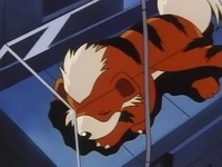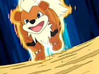 Cuando Eusine cuenta la historia de la torre Quemada, se ve a un Growlithe observando el incendio.