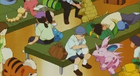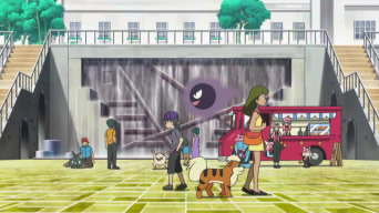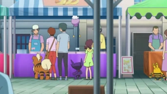 Aparece junto a su entrenadora al lado del puesto de comida del Team/Equipo Rocket.