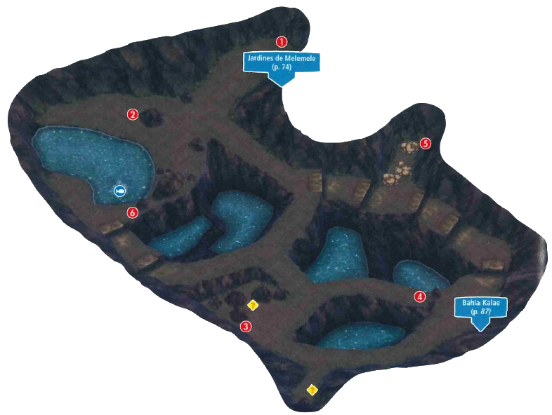 Una vez dentro, está la Gruta Unemar, hay varios objetos (la cinta experto entre ellos) y al final se halla la Bahía Kalae.