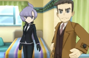 No aparece físicamente pero a veces antes de luchar contra Anís (Alto Mando) se le hace una mención a él y a su Croagunk por un párrafo de novela escrito por ella.