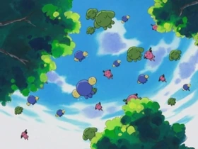 Varios Hoppip aparecen planeando sobre la granja del profesor Oak durante este capítulo. Van acompañados de varios Skiploom y Jumpluff.