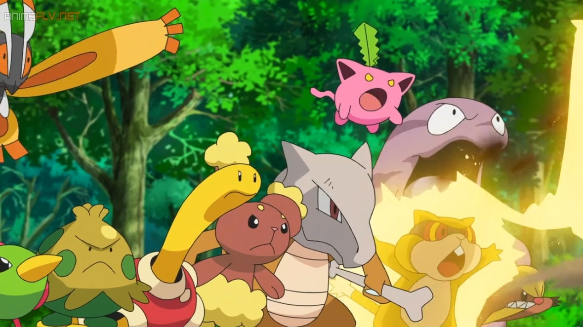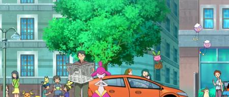 Cuando Clemont/Lem les cuenta su historia a Ash y Serena en una plaza de Ciudad Lumiose/Luminalia se puede ver que atrás hay un Hoppip junto a un Oddish y un Skiploom.