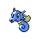 | Zafiro | Si Horsea siente peligro, echará por la boca una densa tinta negra inconscientemente e intentará huir. Este Pokémon nada muy bien batiendo las aletas que tiene en el lomo. | |