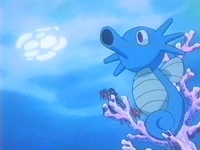 Misty se encontró a este Horsea, que finalmente acabó capturando durante el ataque de los Tentacool a Porta Vista.