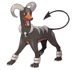 | Rubí | En la manada de Houndoom, el que tiene los cuernos bastante orientados hacia atrás tiene un papel de liderazgo. Estos Pokémon suelen elegir al jefe batiéndose entre ellos. | |