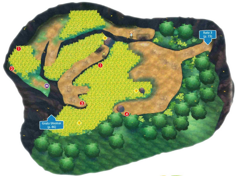 Hay una pequeña caverna en la zona mas suroeste del jardín, apenas visible para las personas, parecida a las madrigueras de los Rattata en la Cueva Sotobosque, que conecta con la Gruta Unemar, para acceder a ella basta con ir por todo el borde sur de la rampa sobre la que se encuentra el hombre enamorado.