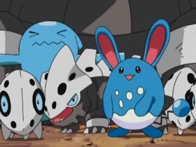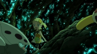 Cuando Ash y los demás llegan a la Cueva Desenlace se pueden ver algunos Pokémon salvajes, entre ellos un Lairon.