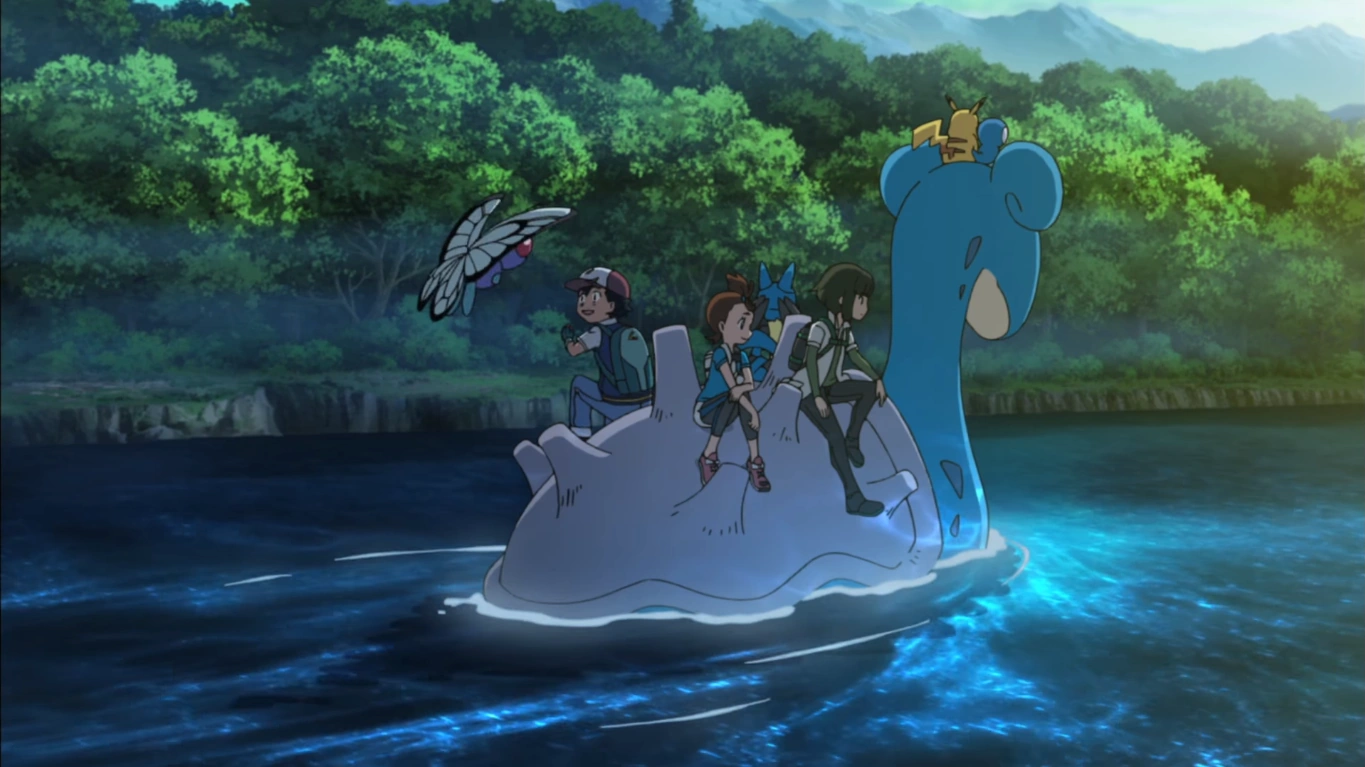 Cuando Ash, Iris, Alexa/Alexia y Cilan/Millo están llegando a Kanto en barco, ven un grupo de Lapras.