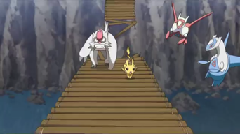 Aparece junto a Latias observando el combate entre el Pikachu de Rojo y un Vigoroth.