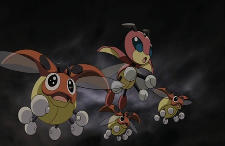 Ledian es uno de los Pokémon de los entrenadores que se suman al barón Alberto para combatir a Darkrai.