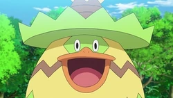 En su cabeza tiene un gran plato o sombrero que en los días de lluvia, este se llena y puede restaurarse y mejorar sus puntos de salud, aunque pierde algo su velocidad. Es un Pokémon muy alegre pero al momento de pelear es un contrincante difícil de vencer ya que es un Pokémon con alta defensa especial.