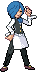 El jugador se enfrentará a él en el caso de que haya elegido como Pokémon inicial a Tepig, pues es el Pokémon del tipo en desventaja frente al que él utilizará para combatir, Panpour. Al vencerlo ganarás la Medalla Trío y obtendrás la MT83, y en el estuche de medallas dice :¡Conocer la relación entre tipos de Pokémon es fundamental para el combate!.