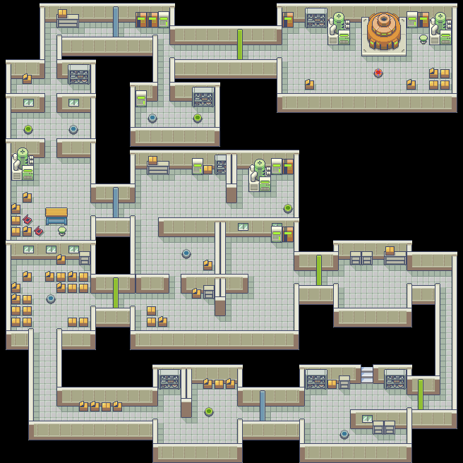 Sigue el camino hacia la derecha, recoge una Poké Ball que te dará una cuerda huida y debajo verás otro interruptor; púlsalo y continúa hacia arriba. Después, toma el camino que se abre a la izquierda. Más arriba el camino sigue hacia la derecha y verás el camino cortado por una puerta verde (antes de llegar, un poco más abajo, está el interruptor para abrirla). Cuando pases por ahí encontrarás el interruptor que desconecta el generador. Si avanzas un poco hacia la derecha podrás encontrar una Piedratrueno en forma de Poké Ball. Después puedes volver para hablar con Erico y recibirás tu recompensa: la MT24. Finalmente, puedes usar la cuerda huida para evitar batallar contra los Pokémon salvajes después de desactivar el generador.