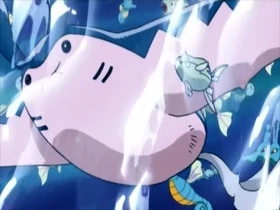 Se trata de un Mantine que habita en los restos de un navío hundido, en el que se encuentra el ala plateada que los protagonistas buscan. Mantine defiende su morada combatiendo contra los intrusos, donde vive junto a un gran banco de Remoraid. Los Pokémon se ayudan los unos a los otros. Los chicos al final logran recuperar el ala plateada.