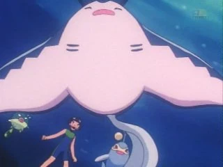 Mientras Ash y los demás viajaban en el submarino en busca de Relicanth, ven a varios Pokémon de tipo agua en el mar, entre ellos un Mantine.