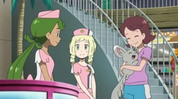 Lylia (anime) se lo devuelve a su entrenadora tras haberlo curado en el centro Pokémon.