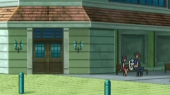 Aparece junto a su entrenadora viendo los resultados finales de la primera ronda de la Liga de Kalos.