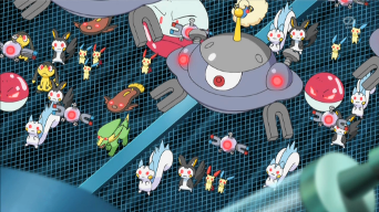 Es uno de los muchos Pokémon de tipo eléctrico que el Team/Equipo Rocket logra controlar por medio de unas ondas enviadas desde la Central de Kalos.