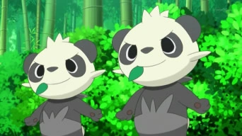 Aparecen dos Pancham salvajes robando la comida de los protagonistas y de sus Pokémon. Son cuidados por un Pangoro.
