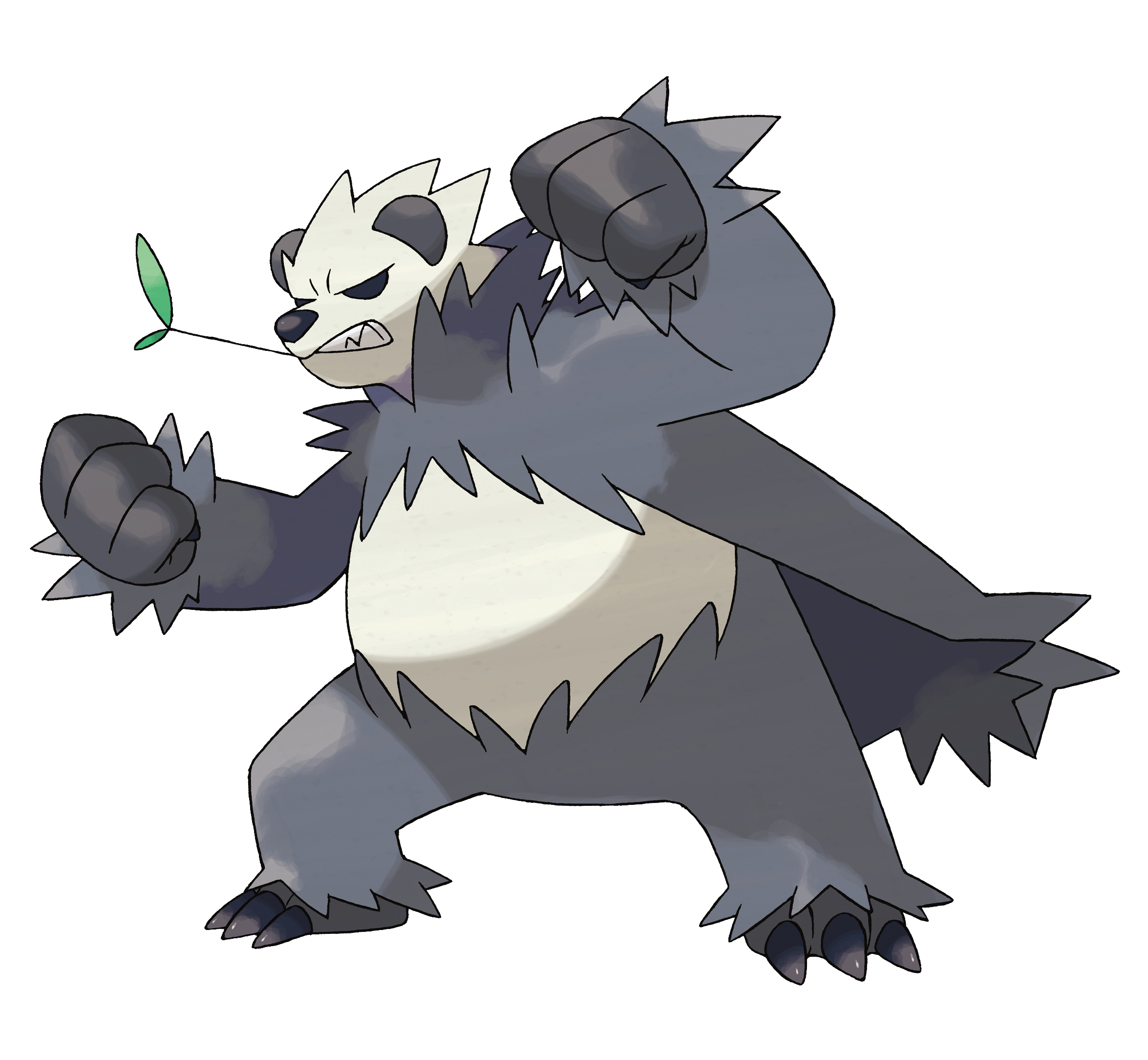 Con esa hoja característica que le asoma siempre por la boca, Pancham trata de intimidar a sus oponentes mirándolos intensamente (aunque no lo suele conseguir).