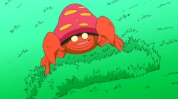 | Pokédex de Ash | EP044 | ES: Parasect, Pokémon hongo. Combate con esporas venenosas que esparce desde el hongo que tiene en su espalda. |