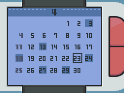 - Utilidad: Te muestra el día y el mes en curso dependiendo de la fecha y hora que tenga tu Nintendo DS.