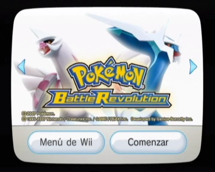 Menú principal del Canal Disco de Pokémon Battle Revolution en la consola Wii.
