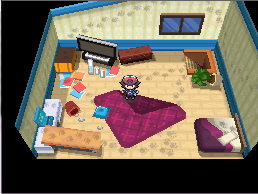 Casa del protagonista, donde también está su madre. Al inicio de la aventura, en tu habitación obtendrás a tu Pokémon inicial, al igual que Cheren y Bel; y el primer combate Pokémon contra ellos. También recibirás de mano de la madre, el videomisor y el mapa. Además, también será un lugar de descanso de tus Pokémon. Al completar la Liga Pokémon, Handsome aparecerá en tu casa y te dará la supercaña. En tu habitación, después de completar la Pokédex nacional, (llevándola al edifico de Game Freak en Ciudad Porcelana), aparecerá un diploma al lado de la televisión, y a su lado el diploma correspondiente por haber completado la Pokédex regional. En la mesa sobre la cual al principio de la aventura se encontraban los 3 Pokémon iniciales correspondientes, se irán colocando los trofeos del metro batalla, a medida que los consigas.