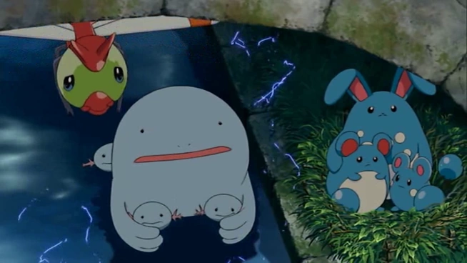 Quagsire tiene fijación con la GS Ball de Ash desde que la ve. No se rinde hasta que consigue llevársela para un ritual muy especial. Ash la recupera más tarde.