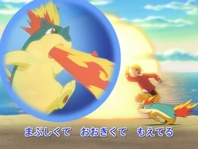Justo cuando Ash acaba de perder con Cyndaquil y tiene dudas sobre si debería evolucionar, aparece un Quilava, evolución de Cyndaquil. Ash puede ver que Quilava es muy ágil, pero aún así sigue confiando en su Cyndaquil.