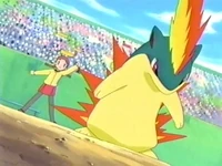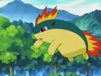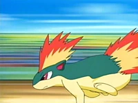 Pertenece a Jimmy. En La leyenda del trueno se le ve convertido ya en un Typhlosion.
