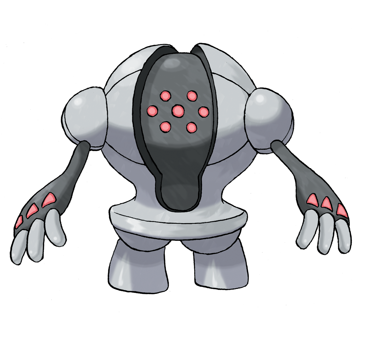 | Rubí | No hay metal que supere en dureza el cuerpo de Registeel, que tiene aspecto de estar hueco. Nadie sabe de qué se alimenta este Pokémon. | |